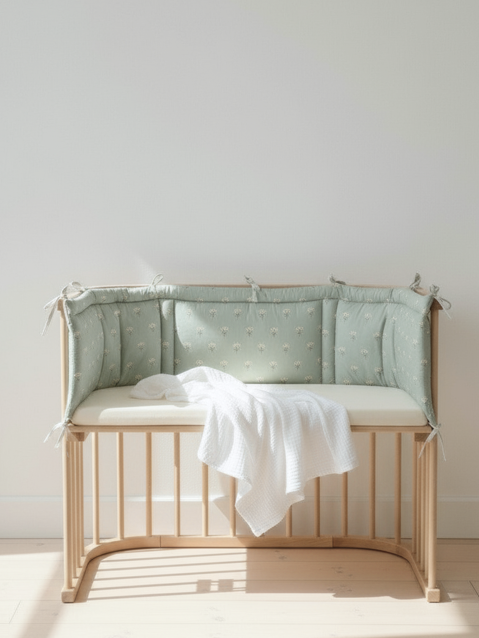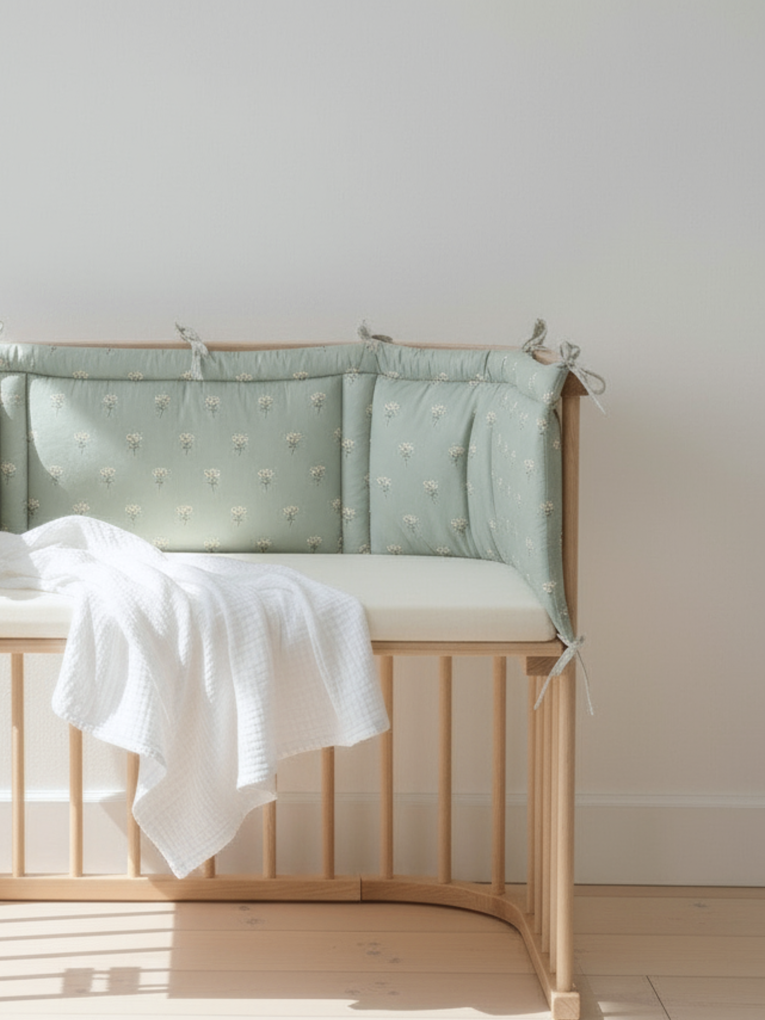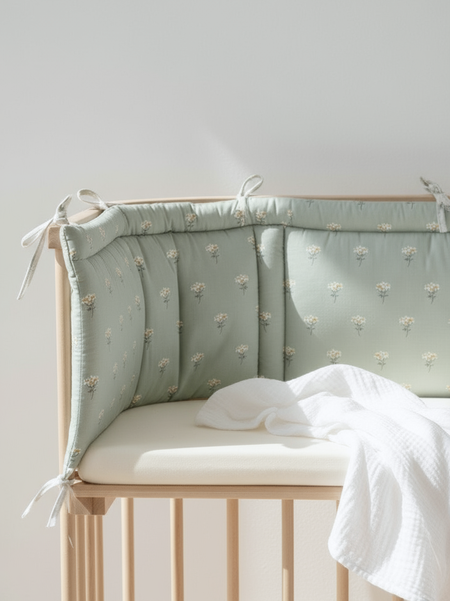 Благодаря мягкому бортику из льна и хлопка, малыш не ударится о рейки кроватки. Цельнокройный бортик не имеет дополнительных отверстий, что снижает вероятность застывания. Завязки надежно фиксируют бортик в кроватке малыша. Мы используем только оригинальный наполнитель Hollowphiber ®(cертифицирован по европейскому экологическому стандарту Oeko-Tex Standard 100 Class), поэтому уверены в безопасности его использования. Такой наполнитель обеспечивает циркуляцию воздуха, чтобы спальное место малыша было максимально комфортным.
