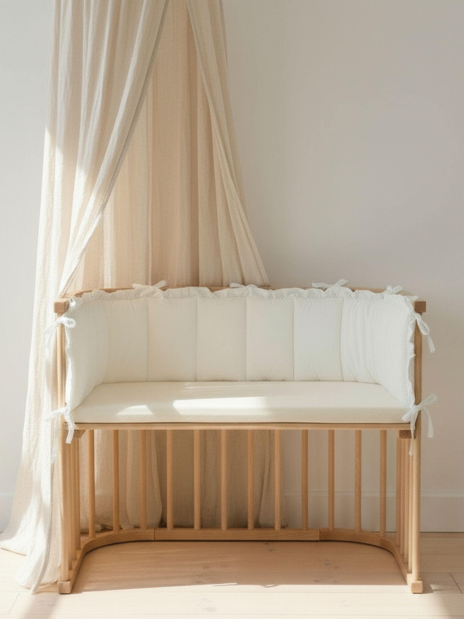 Благодаря мягкому бортику из хлопка, малыш не ударится о рейки кроватки. Цельнокройный бортик не имеет дополнительных отверстий, что снижает вероятность застывания. Завязки надежно фиксируют бортик в кроватке малыша. Мы используем только оригинальный наполнитель Hollowphiber ®(cертифицирован по европейскому экологическому стандарту Oeko-Tex Standard 100 Class), поэтому уверены в безопасности его использования. Такой наполнитель обеспечивает циркуляцию воздуха, чтобы спальное место малыша было максимально комфортным.