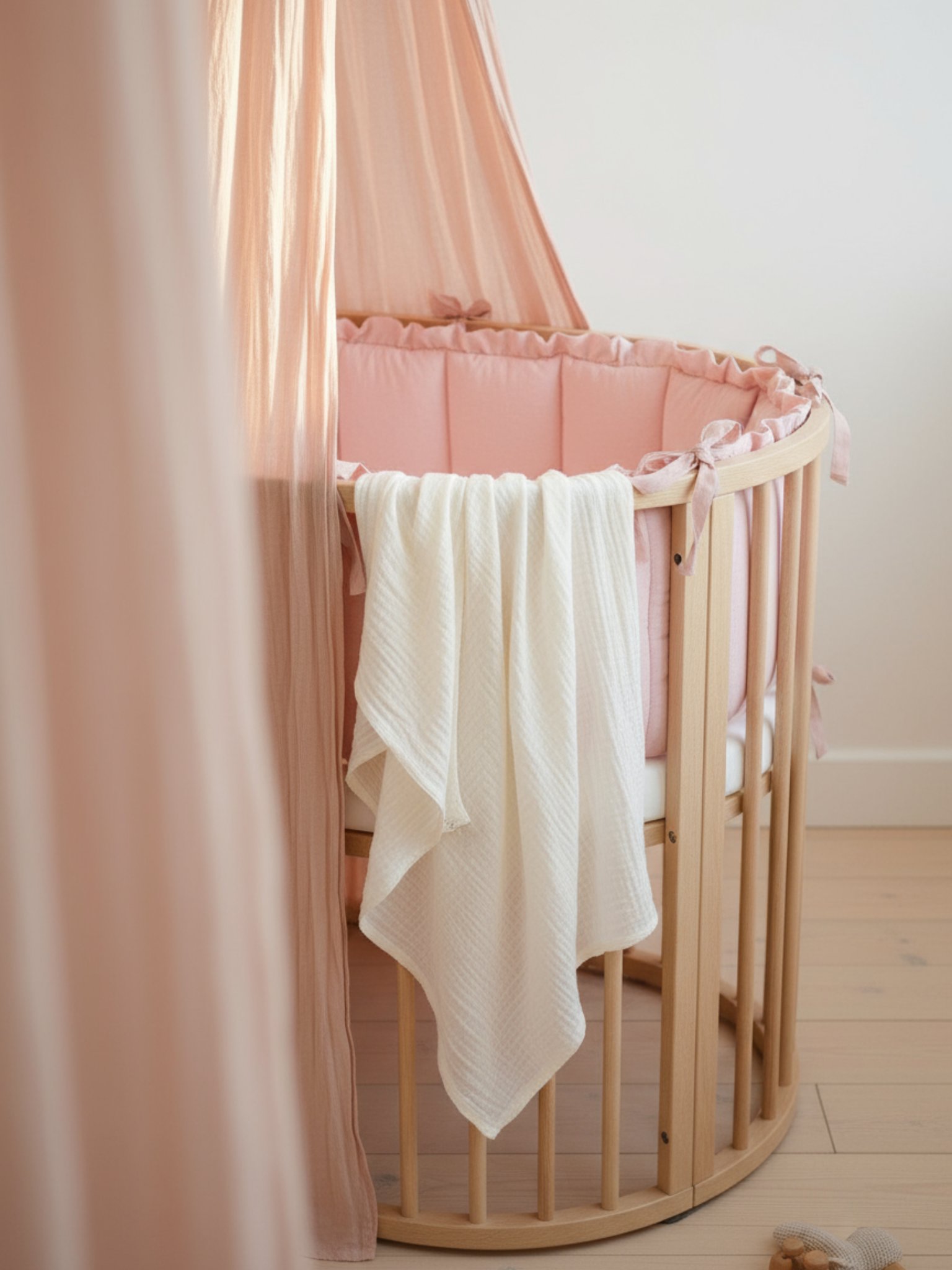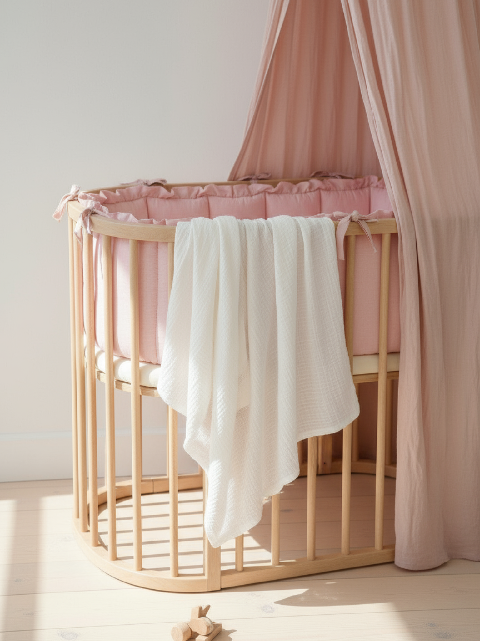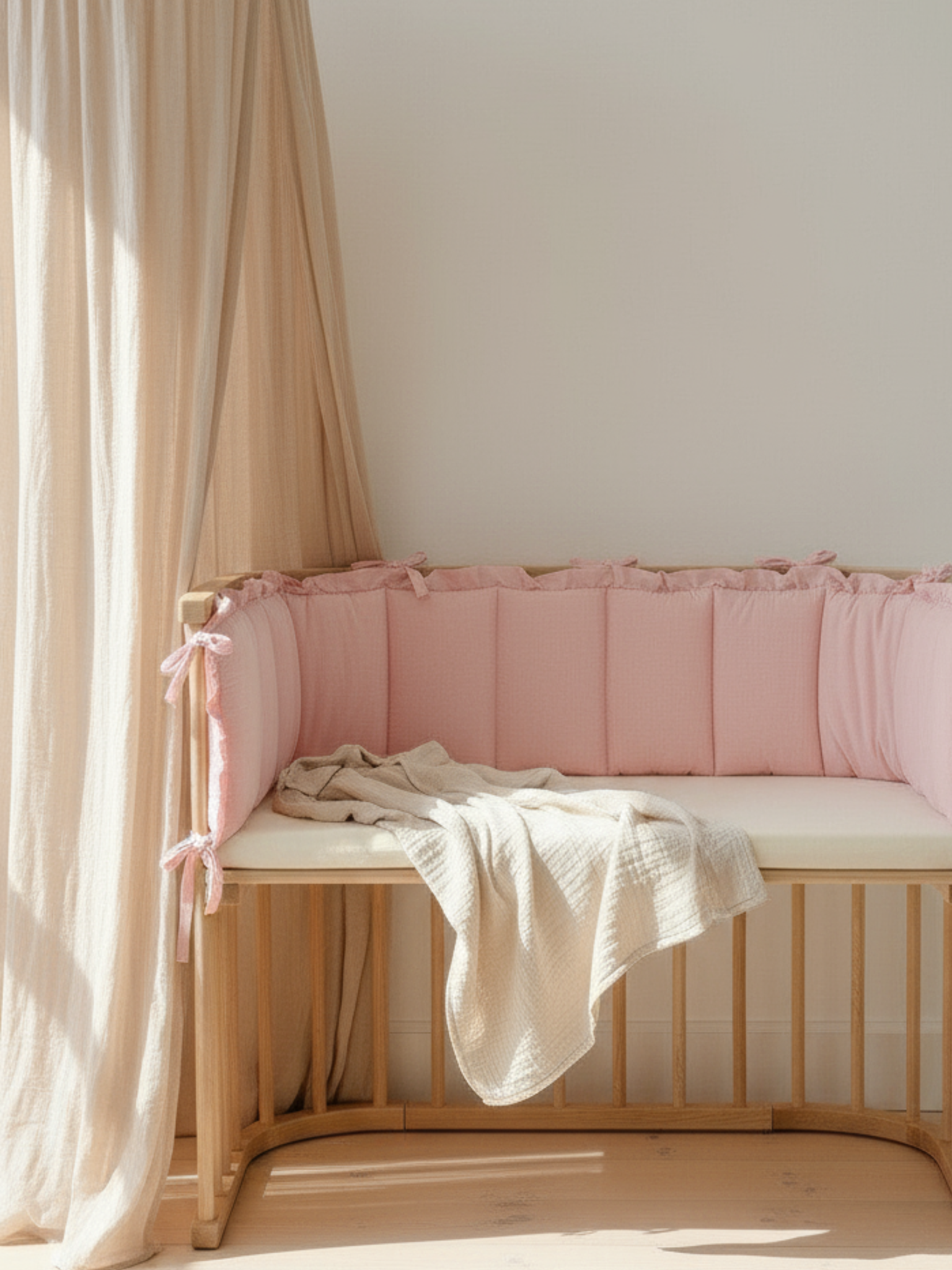 Благодаря мягкому бортику из хлопка, малыш не ударится о рейки кроватки. Цельнокройный бортик не имеет дополнительных отверстий, что снижает вероятность застывания. Завязки надежно фиксируют бортик в кроватке малыша. Мы используем только оригинальный наполнитель Hollowphiber ®(cертифицирован по европейскому экологическому стандарту Oeko-Tex Standard 100 Class), поэтому уверены в безопасности его использования. Такой наполнитель обеспечивает циркуляцию воздуха, чтобы спальное место малыша было максимально комфортным.