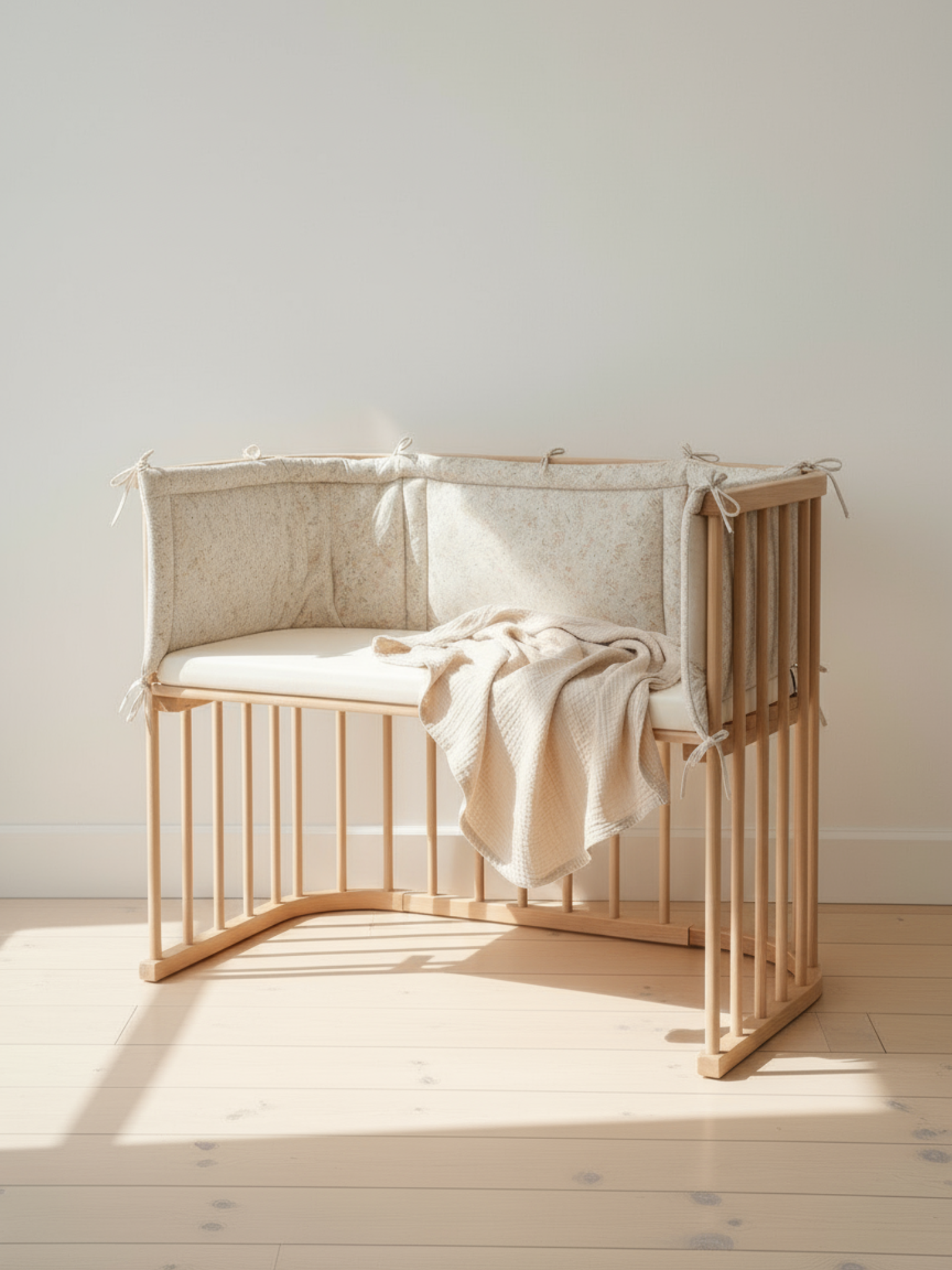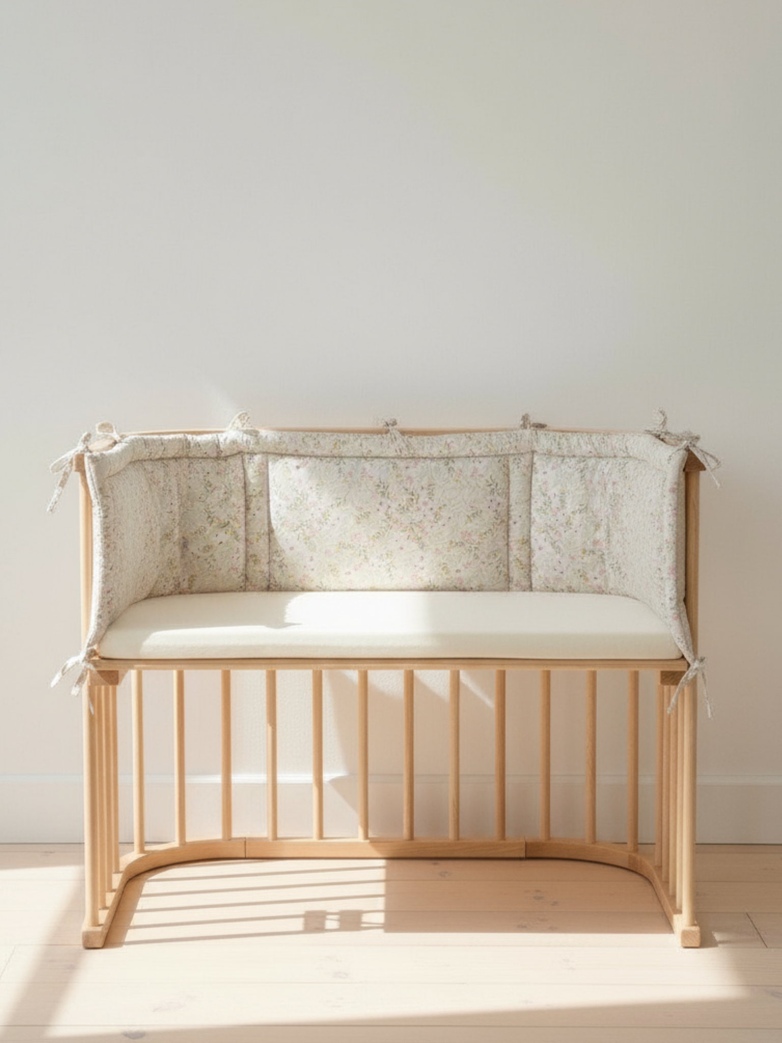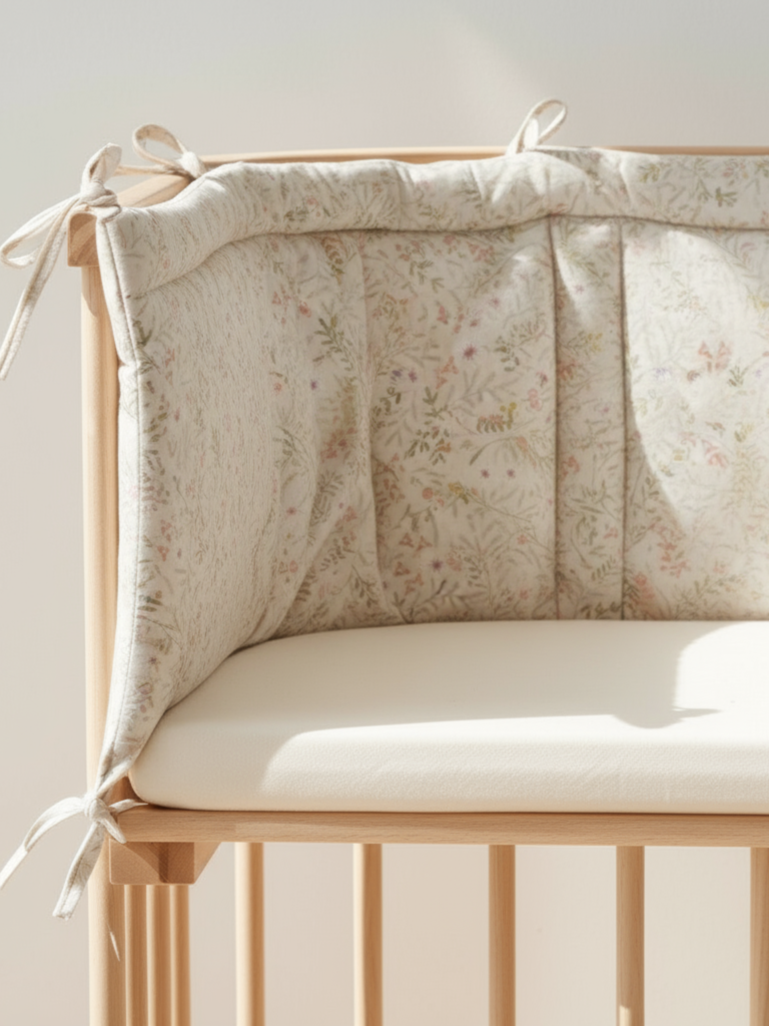 Благодаря мягкому бортику из льна и хлопка, малыш не ударится о рейки кроватки. Цельнокройный бортик не имеет дополнительных отверстий, что снижает вероятность застывания. Завязки надежно фиксируют бортик в кроватке малыша. Мы используем только оригинальный наполнитель Hollowphiber ®(cертифицирован по европейскому экологическому стандарту Oeko-Tex Standard 100 Class), поэтому уверены в безопасности его использования. Такой наполнитель обеспечивает циркуляцию воздуха, чтобы спальное место малыша было максимально комфортным.