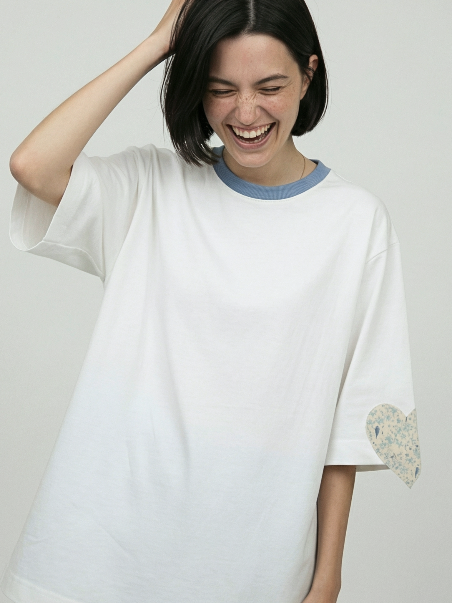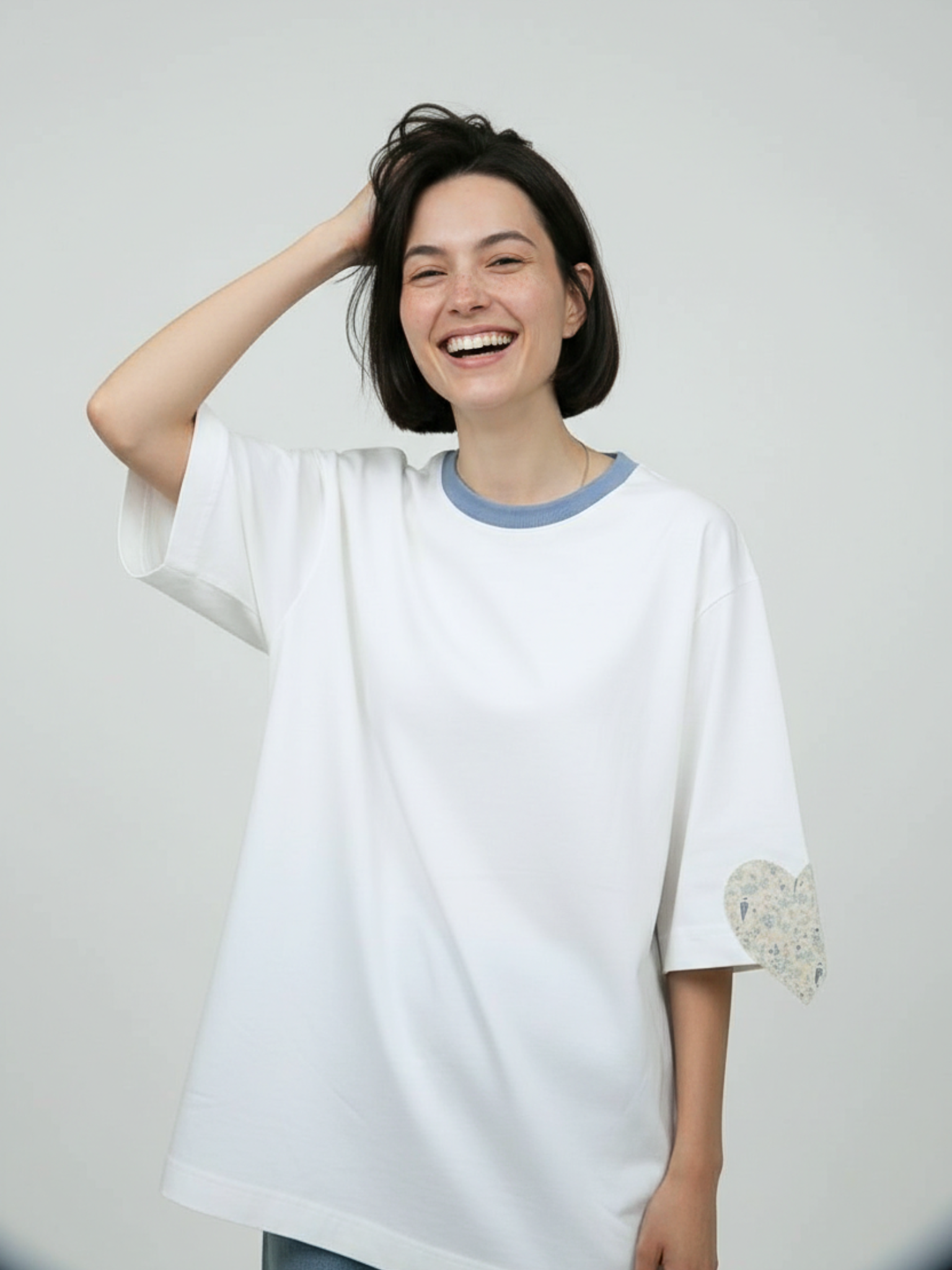 Стильная и невероятно удобная футболка оверсайз создана специально для будущих мам и женщин в период беременности и после родов. Свободный крой мягко садится по фигуре, не стесняет движений и комфортно подходит на любой срок беременности. Модель выполнена в базовом белом цвете с аккуратной контрастной горловиной и оригинальной декоративной нашивкой в форме сердечка на рукаве — нежная деталь, которая делает образ особенным и женственным. Футболка отлично сочетается с джинсами, леггинсами, шортами и юбками, подходит для прогулок, дома, поездок и повседневной носки. Идеальный вариант для тех, кто ценит комфорт и стиль.