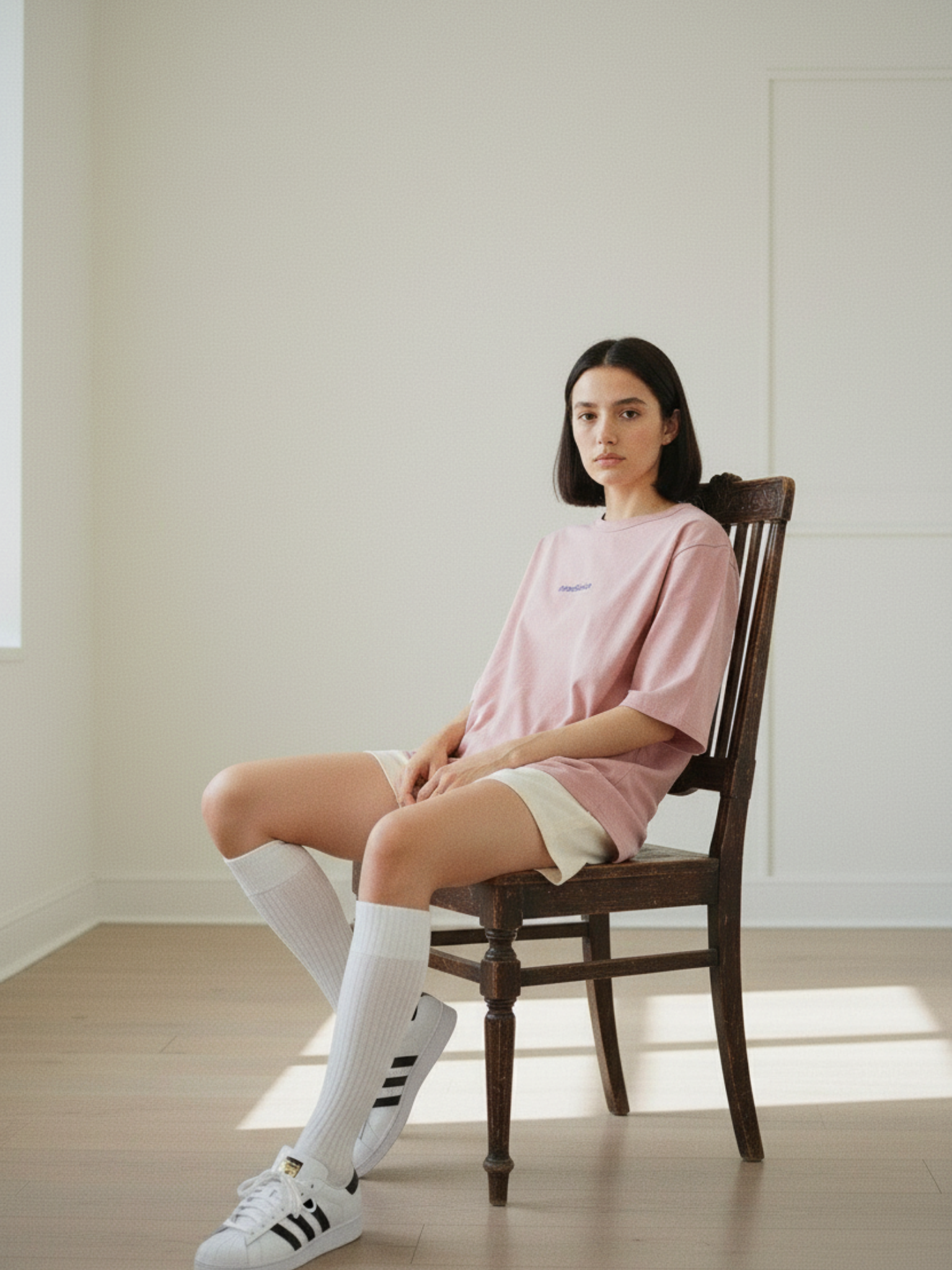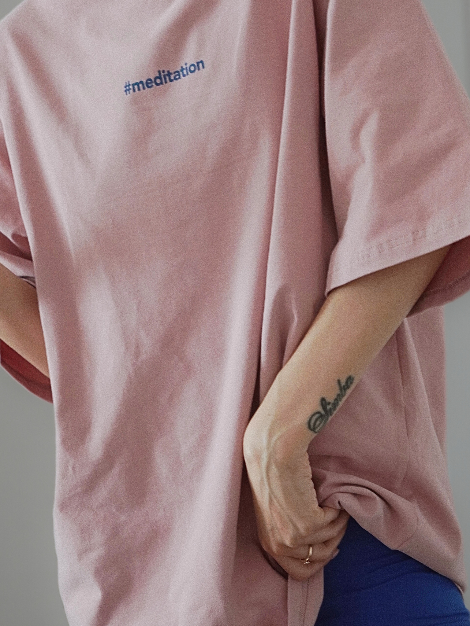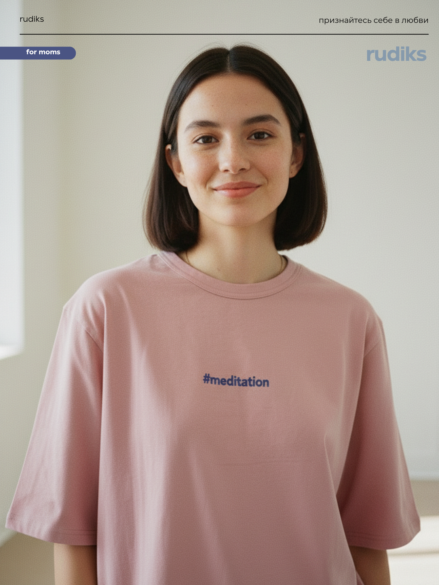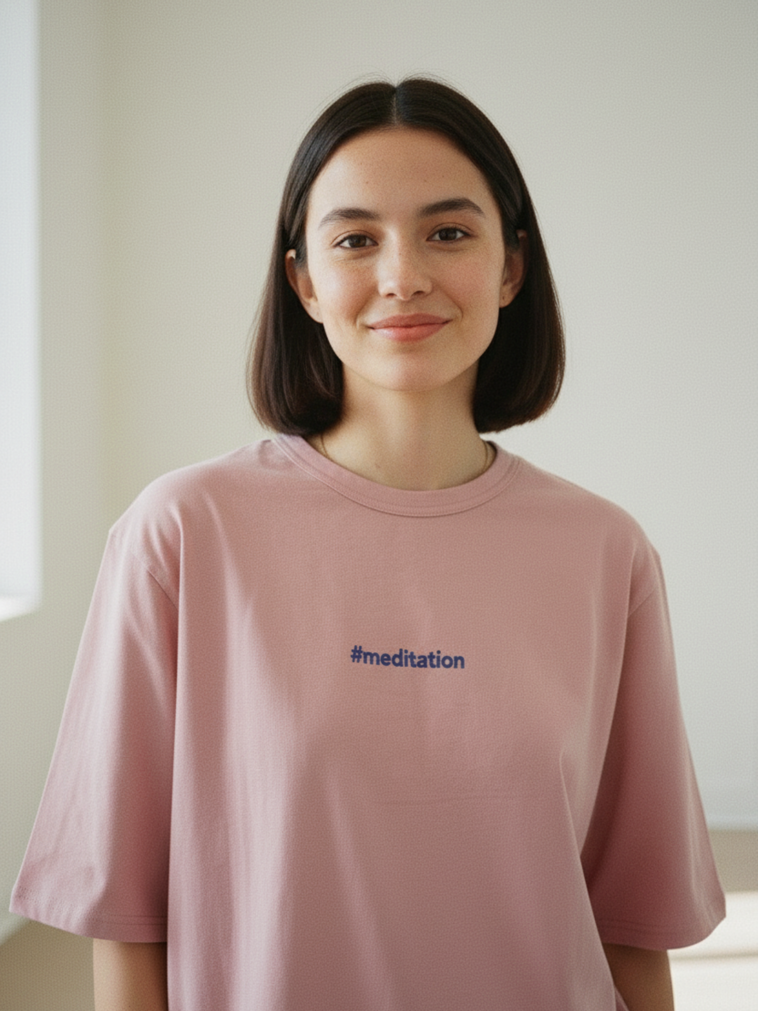 На груди — стильная и вдохновляющая надпись "Meditation", которая делает образ особенным и наполненным смыслом. Удлинённый рукав до локтя и свободный крой не сковывают движения, а минималистичный дизайн легко сочетается с джинсами, брюками или леггинсами.