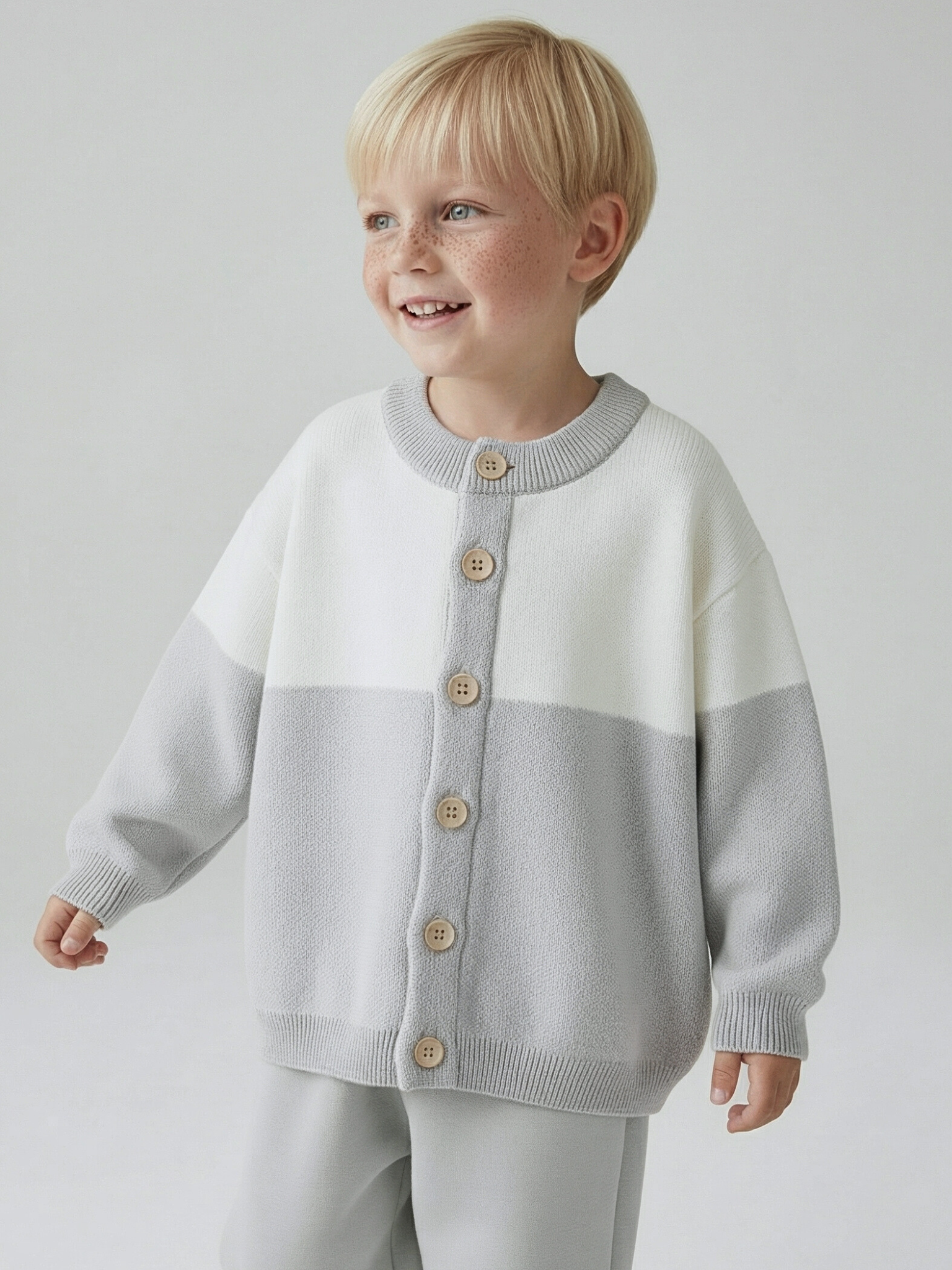 Лёгкий вязаный кардиган Туманное утро — вещь, в которой малыш выглядит особенно трогательно.