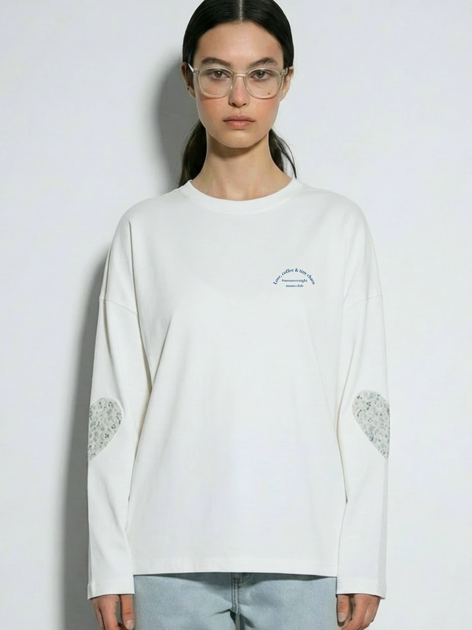 Уютный и стильный лонгслив оверсайз создан специально для будущих мам и женщин после родов. Свободный крой мягко садится по фигуре, не сковывает движения и идеально подходит для растущего животика. Лонгслив комфортно носить дома, на прогулку, в поездки и на каждый день. Модель выполнена в минималистичном стиле и дополнена нежными деталями: аккуратным принтом на груди и декоративной нашивкой в форме сердечка на локтях, что делает образ милым и женственным. Лонгслив отлично сочетается с джинсами, леггинсами и спортивными брюками. Универсальная базовая вещь, которая подойдет на беременность, период кормления и просто для комфортной повседневной носки.