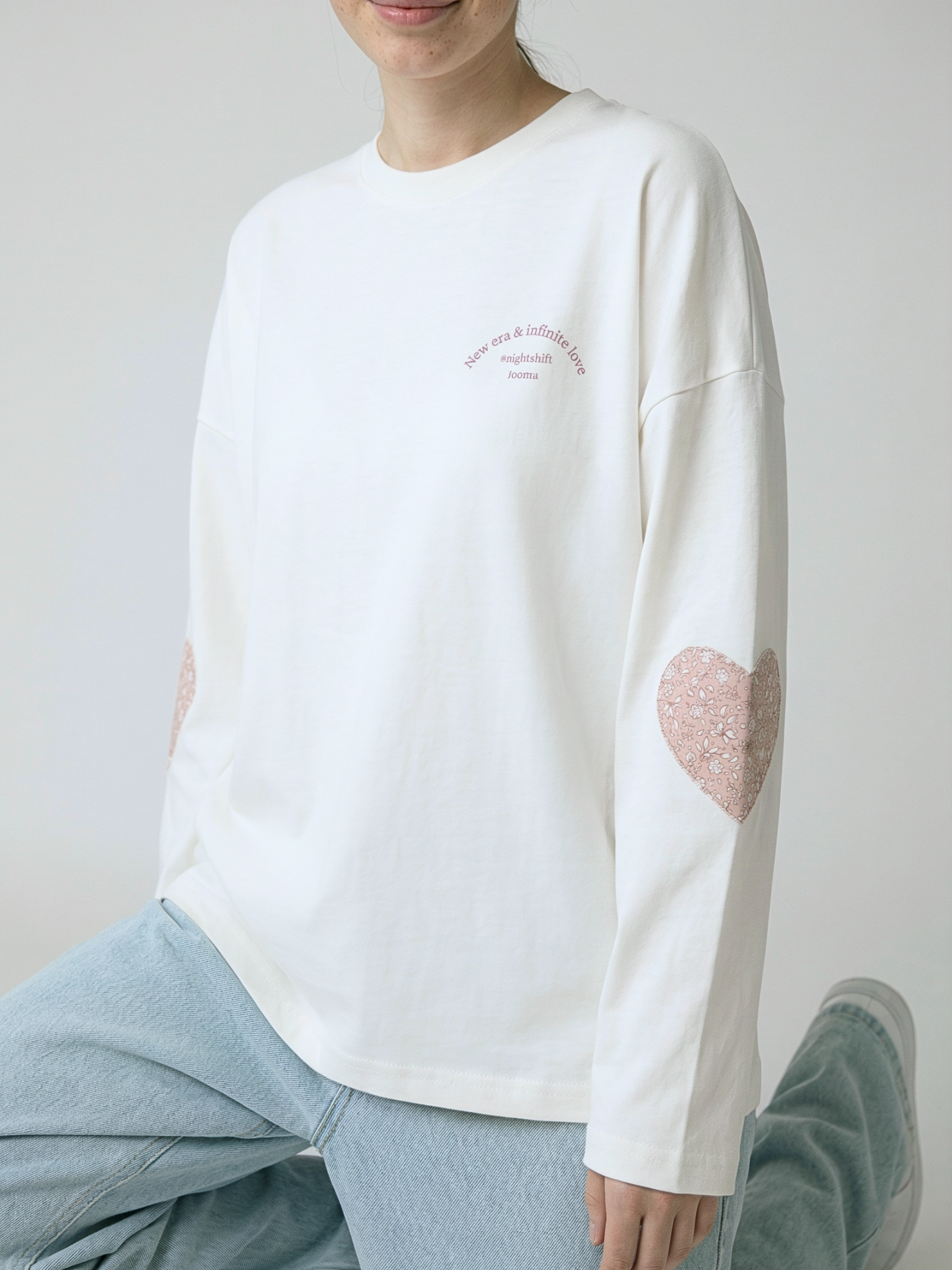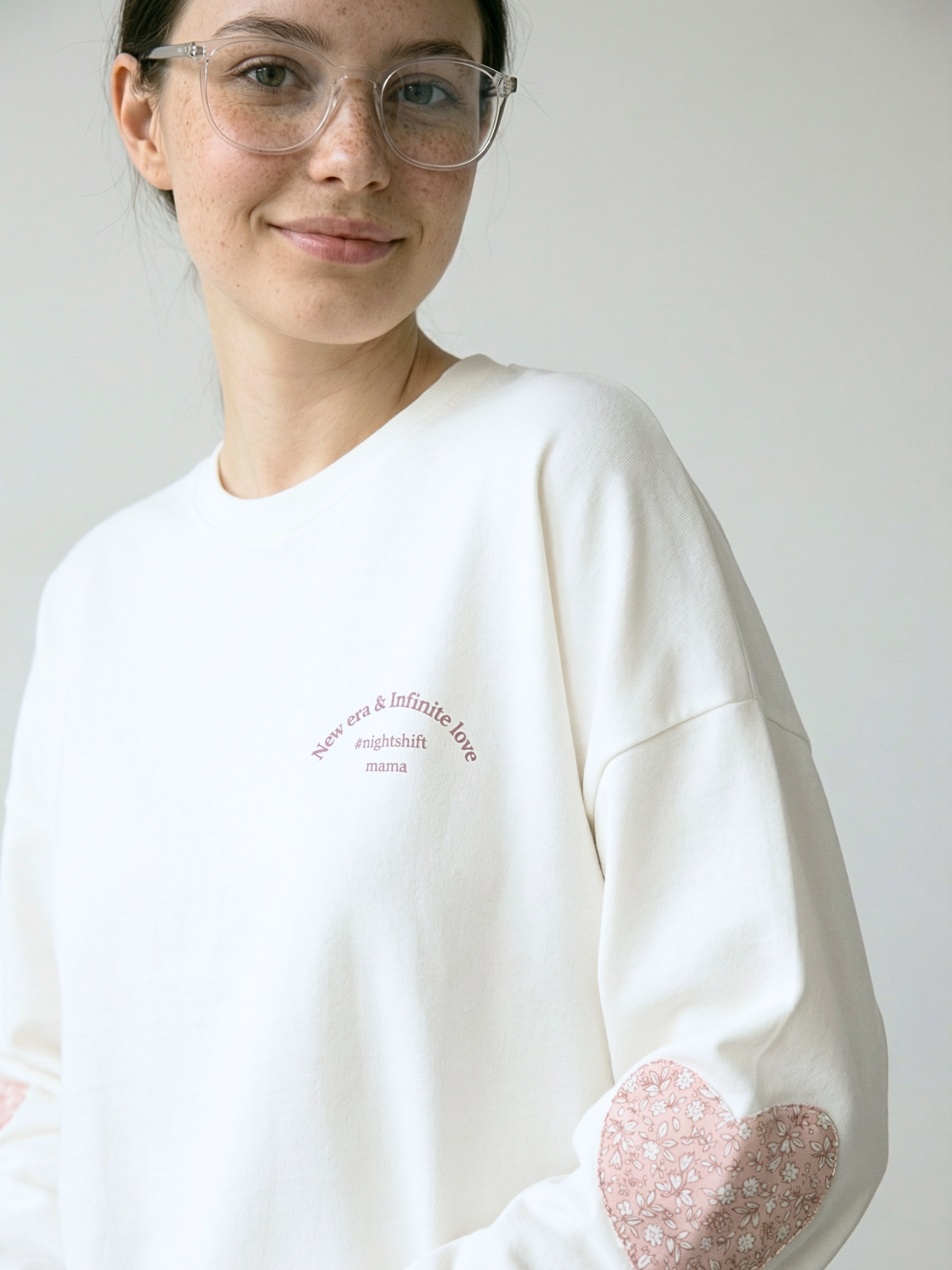 Уютный и стильный лонгслив оверсайз создан специально для будущих мам и женщин после родов. Свободный крой мягко садится по фигуре, не сковывает движения и идеально подходит для растущего животика. Лонгслив комфортно носить дома, на прогулку, в поездки и на каждый день. Модель выполнена в минималистичном стиле и дополнена нежными деталями: аккуратным принтом на груди и декоративной нашивкой в форме сердечка на локтях, что делает образ милым и женственным. Лонгслив отлично сочетается с джинсами, леггинсами и спортивными брюками. Универсальная базовая вещь, которая подойдет на беременность, период кормления и просто для комфортной повседневной носки.