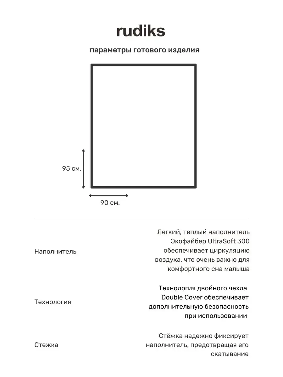 Технология double protect, включающая дополнительный внутренний пухосдерживающий слой - обеспечивает дополнительную защиту ребенка от проникновения наполнителя наружу.