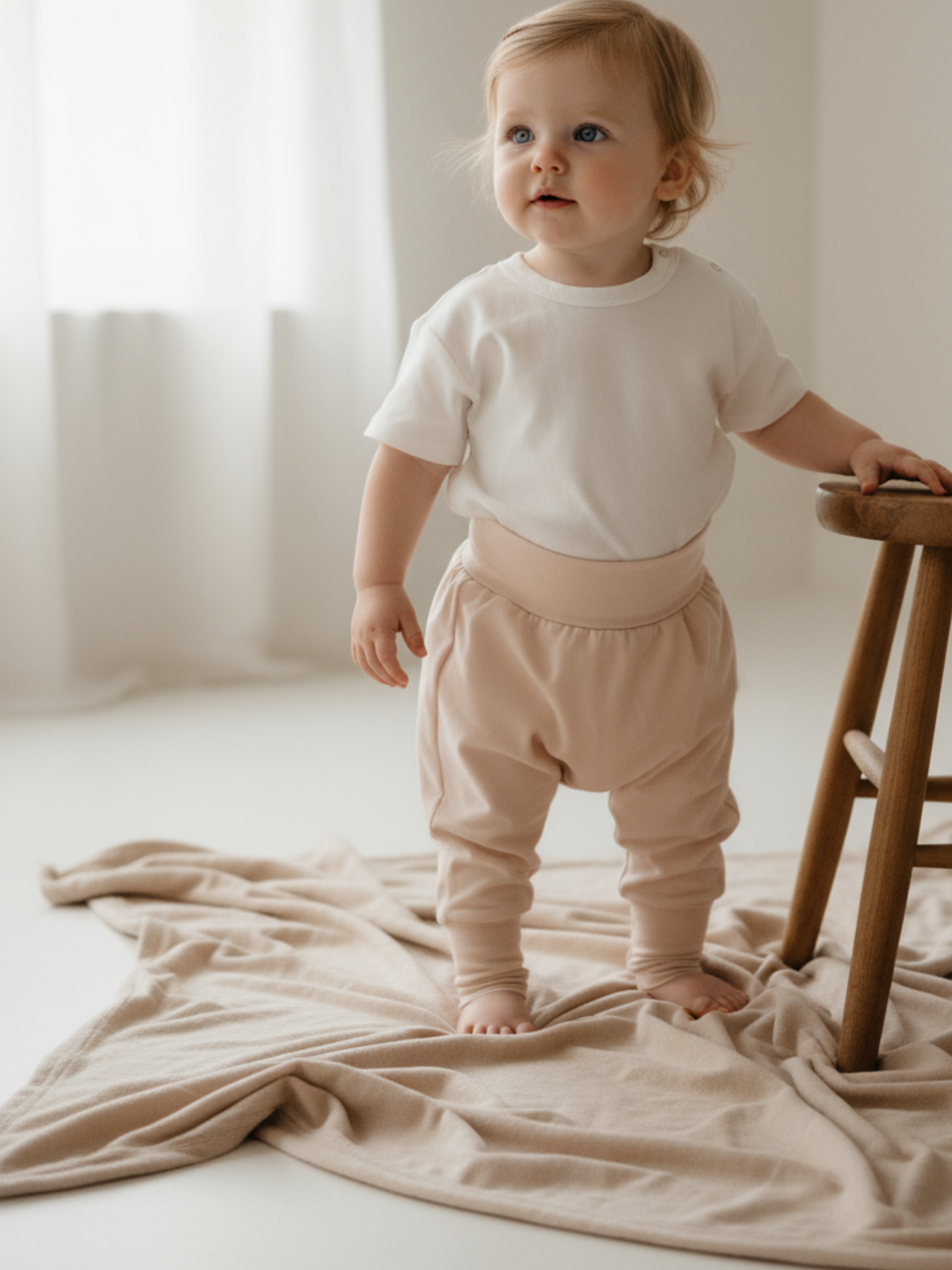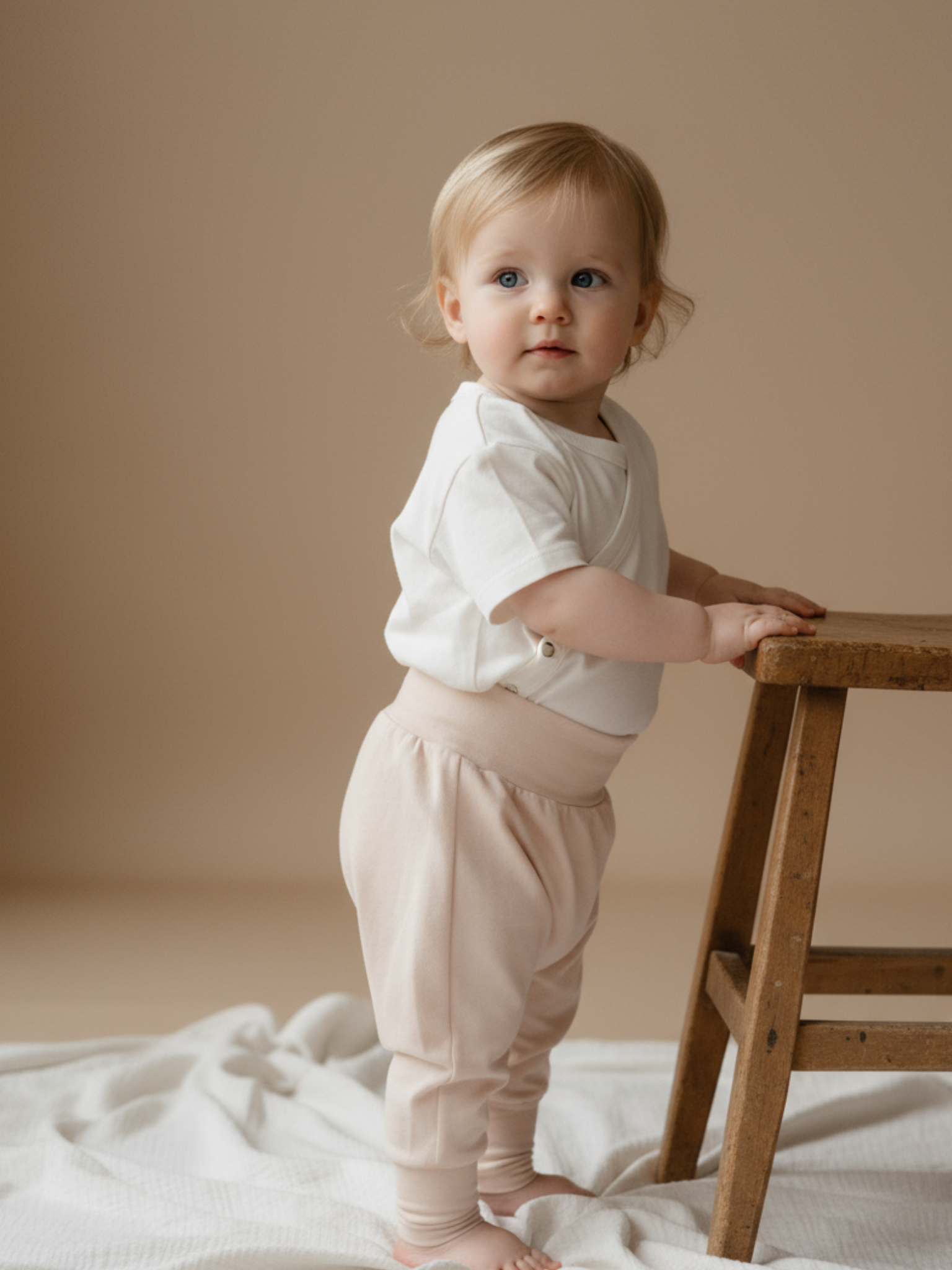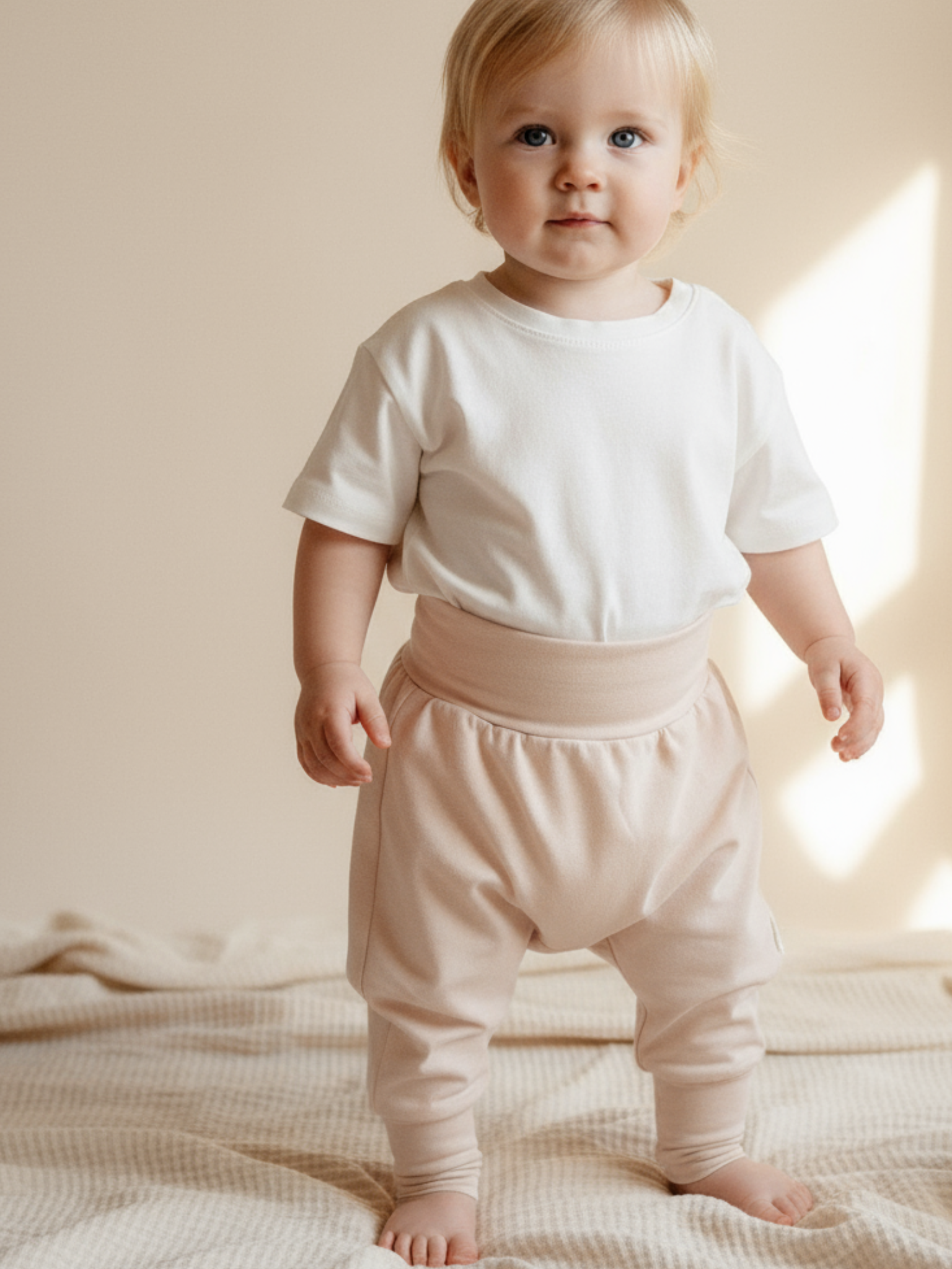 Штанишки для малыша - выполнены из органического гипоаллергенного хлопка. Удлиненные манжеты и линия пояса позволят использовать ползунки во время активного роста малыша. Универсальные базовые цвета подходят для мальчиков и для девочек. Штанишки хорошо сочетаются как с нательными боди, так и с футболками и лонгсливами.